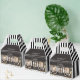 Ce chic ballotin de baby showers, neutre pour les hommes et les femmes, a été conçu pour ressembler à un charmant café parisien, avec un motif rayé noir et blanc et une illustration réaliste d'une vitrine baptisée "Café Bébé". Le haut contient du texte personnalisable pour le nom du parent à être. Parfait pour une célébration à thème français ou d'inspiration café, cette boîte élégante allie sophistication ludique et appréciation sincère. Idéal pour l'emballage de sucreries, de petits cadeaux ou de cadeaux à emporter, ce design ajoute une touche fantaisiste et branchée à tout décor de baby shower.