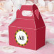 Design rouge personnalisé avec étiquette rond doré et noir ; modèle de texte personnalisable pour votre monogramme