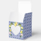 Cette conception de boîtes de bonbons de douche de mariage en carreaux bleus de citron d'agrumes italiens méditerranéens enchanteurs, beaux et frais présente des citrons aquarelles vibrants et des roses roses, complétés par un motif de carreaux italiens méditerranéens bleus complexes avec la calligraphie "Grazie Mille" en lettrage doré et en lettrage rose. Ces boîtes de bonbons promettent d'apporter le charme de la Méditerranée à votre fête de douche de mariage. Facilement personnalisable et modifiable. Vous pouvez transférer ce design sur une variété de produits sans effort.