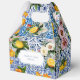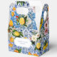 Boîte de style méditerranéen de la côte d'Amalfi en Italie avec des carreaux bleus, citron et cadre bleu.