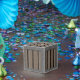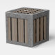 Une caisse en bois de caricature marron avec des bords en métal gris clouté.