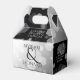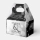 Célébrez le 70e anniversaire de mariage avec style avec cette boîte de faveur commémorative ! Des lettres serif élégantes en noir et blanc avec des confettis hexagonaux sur des fonds alternés en feuille de platine et en noir ajoutent une touche mémorable pour cette occasion spéciale et ce jalon extraordinaire. Personnalisez avec les noms des heureux couples, les années de mariage et les messages de félicitations personnalisés pour leur anniversaire de platine.