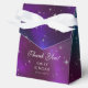 Celestial violet Turquoise Sun Moon Astronomy Wedding Favor Boxes présente des étoiles d'argent avec le texte "Merci" dans le script de calligraphie moderne sur un arrière - plan violet et turquoise. Conçu pour vous par Evco Studio www.zazzle.com/store/evcostudio