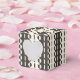 Cercles et Points sur rayures en deux nuances de crème et de charbon (presque noir). D'autres types de boîtes-cadeaux avec ce design sont également disponibles dans d'autres couleurs.