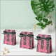 Cercles et Points sur rayures en rose oeillet et charbon (presque noir). D'autres types de boîtes-cadeaux avec ce design sont également disponibles dans d'autres couleurs.