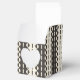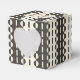 Cercles et Points sur rayures en deux nuances de crème et de charbon (presque noir). D'autres types de boîtes-cadeaux avec ce design sont également disponibles dans d'autres couleurs.