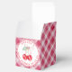 Venez vous régaler avec ce ballotin Cherry on Top baby shower, qui présente un arrière - plan rose en vichy classique et un motif de cerise douce à l'aquarelle attaché avec un ruban de noisette. Parfait pour se remplir de bonbons, de petits cadeaux ou d'autres gâteries pour votre célébration inspirée de la coquette. Le texte personnalisable facilite la personnalisation pour la future maman. Une façon charmante de vous coordonner avec le reste de votre collection Cherry on Top.