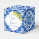 C'est Amore Blue Maiolica tuiles citrons vintage italien douche nuptiale personnalisée monogramme bonboniere ballotin modèle, méditerranéen thème nuptiale douche citrus douche nuptiale bonbon ballotin