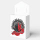Tente blanche avec ballotin en ruban noir avec une image de cabaret, à l'avant et à l'arrière, d'un chapeau noir orné de plumes rouges et d'un arc rouge, d'une plume noire et d'un couvre-chef bijoux avec des roses, d'un boa rouge et du texte "It's Showtime ! en écriture française argentée et éclatante. Voir invitation correspondante, confetti, sac de faveur, étiquette de faveur, sacs cadeaux, étiquette, autocollant rond, autocollant vinyle taillé sur mesure et papier d'emballage. Voir l'ensemble de la collection de Ballotins canadiens dans les TOUCHES SPÉCIALES | Section Favoris.