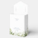 Un élégant contenant pour cadeaux de baby shower C'est un garçon avec feuillage vert et typographie bleu poussiéreux chic. Vous pouvez personnaliser avec votre propre message de remerciement sous le couvercle. Une façon parfaite de dire merci à vos invités ! Conçu par Thisisnotme©