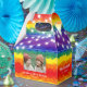 Un ballotin d'anniversaire avec un arrière - plan arc-en-ciel coloré et une lumière brillante à cordes, avec une typographie vibrante et une photo de votre choix.