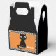 Chat noir avec queue courbée ballotin de fête d'Halloween avec chat noir et bordure à damiers noir et blanc (voir cuisine et repas assortis et articles de fête). Personnalisez-le en ajoutant un nom et/ou votre propre texte, en modifiant les images et l'arrière - plan. Si vous ne voulez pas un ballotin Halloween enlever arrière - plan orange et choisir ou éliminer la police et c'est juste un chat mignon avec des chèques noirs et blancs. Reportez-vous à la section Coordination des éléments de conception, que vous pouvez également personnaliser et customiser.