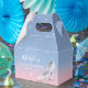 Créez vos propres boîtes de faveurs de fête personnalisées uniques et élégantes avec un magnifique modèle DIY Cendrillon princesse bleu clair et rose qui est simple à personnaliser avec un nom, une date, une célébration et un message personnalisé d'amour et de remerciement. L'œuvre d'art originale du conte de fées par Raphaela Wilson met en vedette un magnifique escarpin en verre de Cendrillon / chaussure à talon haut (avec la possibilité d'ajouter un papillon en cristal), un carrosse en citrouille tiré par des chevaux, des confettis en forme de cœur fantaisistes et une horloge magique sur le point de sonner minuit. Des étoiles scintillantes en faux strass ajoutent également du charme à ces boîtes de faveurs à modèle DIY. Si vous souhaitez une typographie alternative, n'hésitez pas à modifier l'écriture calligraphique chic et les polices modernes dans le style qui vous convient le mieux. Ces boîtes de faveurs mignonnes peuvent être utilisées comme cadeaux de remerciement personnalisés pour vos invités qui ont participé à faire de votre grand jour un moment étincelant. Comme le texte est modifiable, ces faveurs de fête peuvent également convenir parfaitement aux mariages il était une fois, à une fête des 16 ans d'une princess
