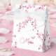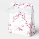 This custom birthday favor box features pretty pink cherry blossom branches on a white background. Add a name in an elegant calligraphic script.