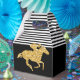 Les boîtes de faveurs de fête de style Gable présentent un cheval de course en paillettes dorées sur des rayures noires et blanches en haut et en noir en bas - changez les couleurs de fond comme vous le souhaitez ! Idéal pour une fête de Derby, une douche de nubilée Derby, un anniversaire, une fête de retraite et plus encore. ARTICLES correspondants dans notre magasin.