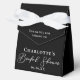 This elegant black bridal shower favor box features beautiful white typography for an evening party in the winter. Minimalist script is a modern trend for a contemporary bride.