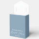 Cette boîte de faveur de fête prénuptiale bleu poussiéreux comporte une typographie blanche minimaliste élégante et en dessous un beau nœud. Des boîtes de faveur de douche grises bleues simples et douces pour une mariée côtière.