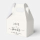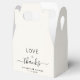 Chic boîte de mariage crème légère avec "love + merci" en typographie moderne simple et un élégant script de calligraphie avec des swashes, vos prénoms unis par un coeur et votre date mariage.