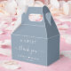 Chic boîte de faveur de mariage bleu poussiéreux avec "un gentil merci" en typographie simple et un élégant script blanc avec des swashes, vos prénoms unis par un coeur et votre date mariage.