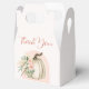Dégustez vos invités avec ce Ballotin Floral Boho Arch Citrouille de couleur rose, avec un citrouille blanc aquarelle peint à la main, orné de roses roses douces, une végétation d'eucalyptus sauge, des plumes de saumons rustiques et un feuillage d'automne. Le texte personnalisable ci-dessus dit "Merci", rendant chaque faveur personnelle et mémorable. Idéalement coordonnées avec la suite événementielle Falling in Love, ces boîtes sont idéales pour les douches pour bébés filles, les célébrations à thème d'automne et les rassemblements d'automne chic-boho girly. Paire avec des invitations, des étiquettes de faveur et d'autres éléments de suite pour un look cohésif et élégant.