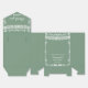 Elegant Sage Green baby shower favor box with delicate white papel picado banner and ornamental lace-style frame. Personalized with the baby’s name and event date, this charming gift box adds a refined touch to your Cielito Lindo or classic baby shower celebration.