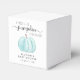 Un mignon ballotin bébé avec une aquarelle bleu pastel d'un citrouille et "un gentil petit merci" et "un doux petit citrouille est en route" écrit dans une simple typographie grise et un script élégant avec des swashes. Personnalisez facilement le nom et la date de la douche de la mère en coordonnant la typographie grise.