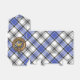 Clan Hannay badge crête entouré d'une sangle et boucle sur tartan. Texte et monogramme personnalisés.