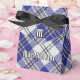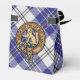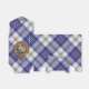 Clan MacPherson crête badge entouré d'une sangle et boucle sur le tartan bleu robe. Texte et monogramme personnalisés.