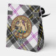 Clan MacPherson crête badge entouré d'une sangle et boucle sur le tartan habillé. Texte et monogramme personnalisés.
