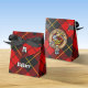 Clan Wallace crête badge entouré d'une sangle et boucle sur l'arrière - plan tartan. Texte personnalisé.