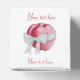 Ces deux coeurs d'amour rouges ont un joli arc blanc qui les lie ensemble représentant deux coeurs amoureux comme un seul. Ce ballotin fait un magnifique et original mariage favors conteneur pour vos invités mariages. Les coeurs sont enveloppés d'un arc blanc et peuvent aussi être vus sur mes invitations de cérémonie mariage/civile avec enveloppes assorties, il y a aussi des serviettes de coeur et d'arc rouges à assortir. Vous pouvez ajouter vos propres détails de mariage sur le couvercle de cette charmante petite boîte de faveurs de mariage personnalisable. Cette boîte de coeur fait également une boîte cadeau valentines romantique. Cette peinture de coeur d'amour unique apparaît également sur mes casiers et cartes de voeux. Cette illustration originale de coeur rouge se distingue par son arrière - plan blanc et sera un joli souvenir de votre mariage pour votre famille et vos invités mariages. Il s'agit d'une zone personnalisable, vous pouvez la personnaliser avec votre propre texte. L'image originale de cette petite illustration de coeur et d'arc est peinte en aquarelle.