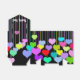 Coeurs suspendus colorés sur le noir. Peut être utilisé pour remercier les invités. Le texte peut être modifié ou supprimé.