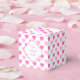 C'est un ballotin cadeau mignon pour une variété d'occasions, mais surtout pour la Saint-Valentin! La boîte est recouverte de minuscules coeurs valentins roses foncés et clairs sur un arrière - plan blanc. Une bannière blanche doublée de rose à l'avant tient votre texte customisé, également en rose. Joli pour elle !