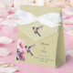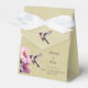 Offrez des faveurs cadeaux à vos invités ou à votre fête de mariage avec cette boîte de préférence Mariage Colibri Jaune et Hibiscus. Le design ballotin présente une paire de fleurs d'hibiscus rose vif avec un colibri à gorge rubis. Fourniture supplémentaire de papeterie mariage et de partie disponible avec cette conception.