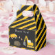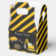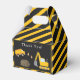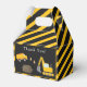 Célébrez la journée spéciale de votre petit avec ce ballotin de fête d'anniversaire garçon personnalisé avec un thème de construction adorable. La boîte a un camion à benne et une pelle qui travaillent ensemble sur un chantier de construction de routes. Il y a aussi des cônes de circulation orange, un tas de terre, et des rayures jaunes et noires. Utilisez le texte du Merci tel quel ou customisez. Ce ballotin enfant fait un grand ajout personnalisé à votre fête d'anniversaire!