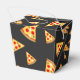 tranches de pizza cool et amusantes motif sur gris foncé. Pizza juteuse à croûte croquante, fromage, salami, champignons champignon, olives et une saupoudrée d'origan.