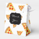 Personnalisez la boîte de faveur pizza d'anniversaire avec votre initiale et votre nom. Tranches de pizza cool et amusantes motif sur blanc - boîte cadeau unique pour les gourmands, restaurateurs, pizzerias.. Pizza juteuse à croûte croquante, fromage, salami, champignons champignon, olives et une saupoudrée d'origan.