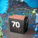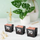 Célébrez le grand sept oh avec ce design moderne élégant, qui comprend un bloc noir, blanc et cuivre frappant et des lettres écrites à la main sur un gris fumée à un riche arrière - plan noir. Reverse affiche un design identique. Design © W.H. Sim. Voir plus sur zazzle.com/expressionsoccasions