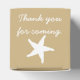 Offrez à vos invités, servantes d'honneur, groomsmen ou à n'importe qui d'autre un régal spécial avec ces ballotins personnalisables avec un arrière - plan de sable tan avec un dollar de sable blanc, coquillage et étoiles de mer sur l'avant, le dos et le dessus de la boîte, respectivement. Chacun de ces côtés contient également des exemples de texte que vous pouvez customiser pour votre propre mariage ou événement d'été ou de plage. N'oubliez pas de jeter un coup d'oeil aux autres produits de Summer Seashells in Sand set pour créer un look vraiment coordonné pour votre événement.