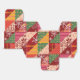 Patchwork de motifs de Noël aux couleurs festives, avec sucres de canne, ornements et flocons de neige.