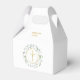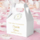 Élégante boîte de faveur de première communion florale comportant une couronne de feuillage de laurier et une croix dorée avec les détails de votre événement dans une typographie dorée chic. Vous pouvez personnaliser avec votre propre message de remerciement au verso. Une façon parfaite de dire merci à vos invités ! Conçu par Thisisnotme©