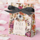 Cette élégante et moderne boîte de faveur de baby shower "tomber en amour" présente une couronne de feuilles et de fleurs d'automne en forme d'arche sur un fond rose rosé. Personnalisez-le selon vos besoins. Vous pouvez trouver des produits assortis dans ma boutique.