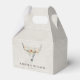 Enchantez vos invités avec notre boîte de préférence de mariage rustique. Avec les noms de la mariée et du marié et la date du mariage dans une élégante police occidentale, cette boîte est ornée d'un étonnant crâne de lune de vache aquarelle avec des fleurs de prairie et du feuillage. Idéal pour ajouter une touche de charme vintage et d'élégance rustique à votre célébration champêtre.
