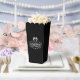 Boîte de faveur noire de cravate de smoking pour enterrement de vie de garçon pour des snacks tels que du popcorn.