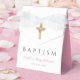 Boîte de cadeau de baptême à croix florale moderne élégante personnalisée.