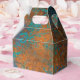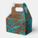 Boîte à faveur en damassé sarcelle et cuivre vintage étincelant avec des accents d'aqua.