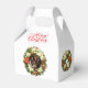 This favor gift box is shown with a festive holiday wreath print and has a festive text of Merry Christmas, shown with a custom sample photo.