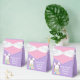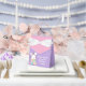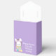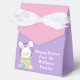 Customize this cute Happy Easter Bunny party favor box with your own personalized text with your child's name in white script. This adorable bunny rabbit sits in a pretty Easter basket on lovely pink and purple gift boxes for children.