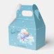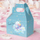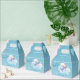 Un ballotin avec un mignon petit avion volant à travers les nuages sur un arrière - plan bleu aux étoiles colorées, personnalisé avec votre message de remerciement aux invités pour avoir assisté au baby shower.