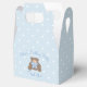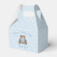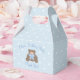 Un joli et adorable ours en peluche bleu pastel sur le pastel bleu et blanc polka point motif arrière - plan anniversaire Merci ballotin.